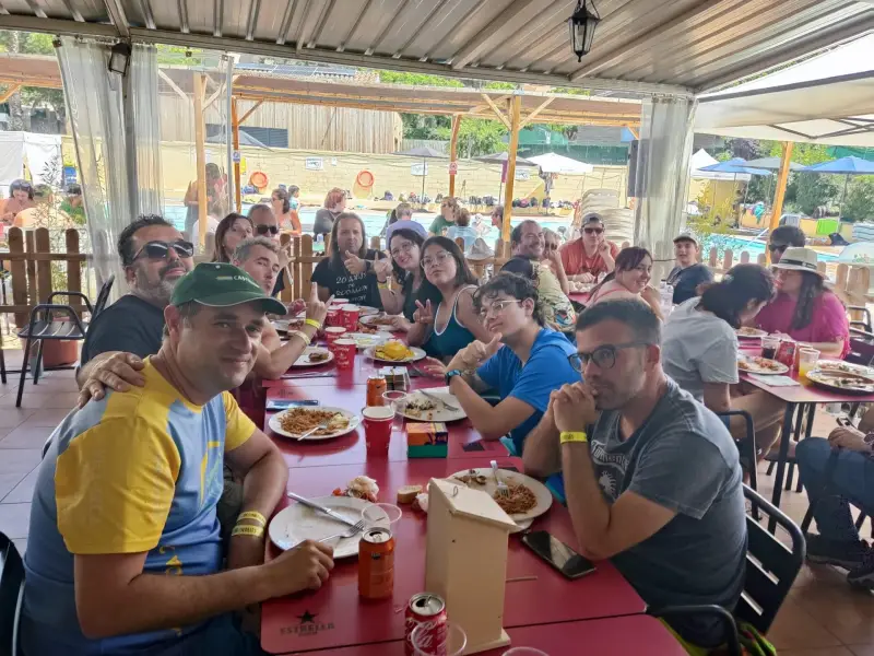 Comparte los últimos momentos con el resto de geocachers, entre platos y risas.